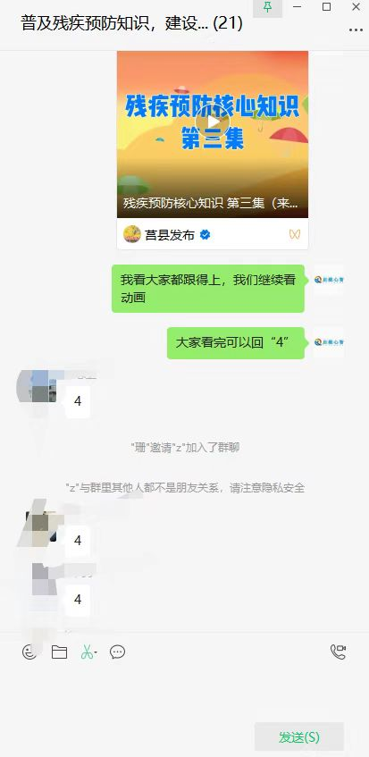 受疫情影响,社工以线上宣传的形式举行了疾病预防核心知识宣讲,将残疾预防以动画解说的方式,生动形象地让服务对象及家属了解到残疾预防的重要性。