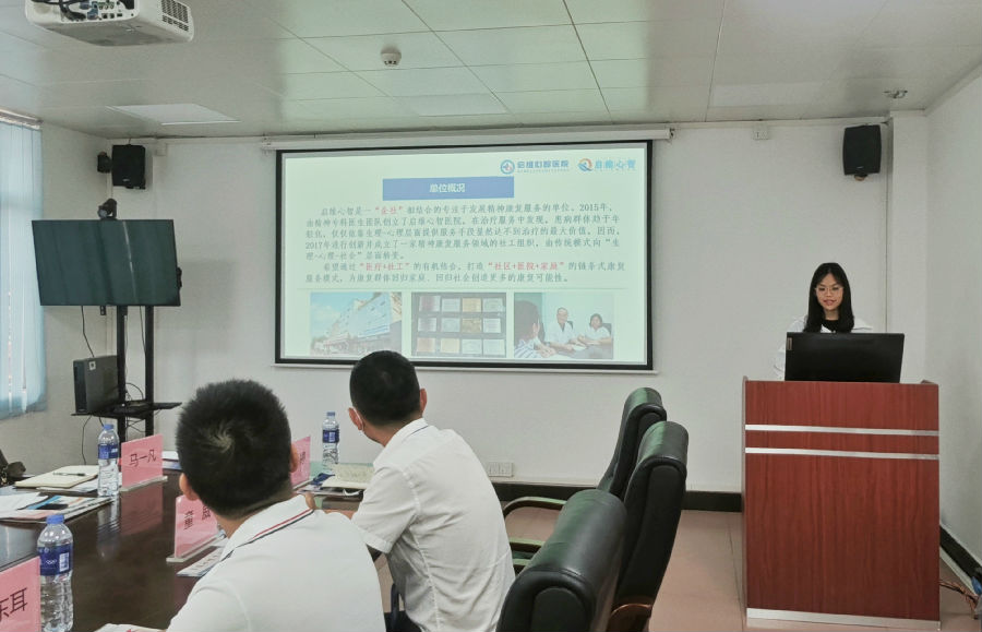 中心总干事江远婷介绍了中心项目概况和服务理念等基本内容,分享了项目运营和管理的经验做法,希望未来能继续加强与各方的合作交流,为天河区社区精神康复者带去更专业、全面的社区康复服务。