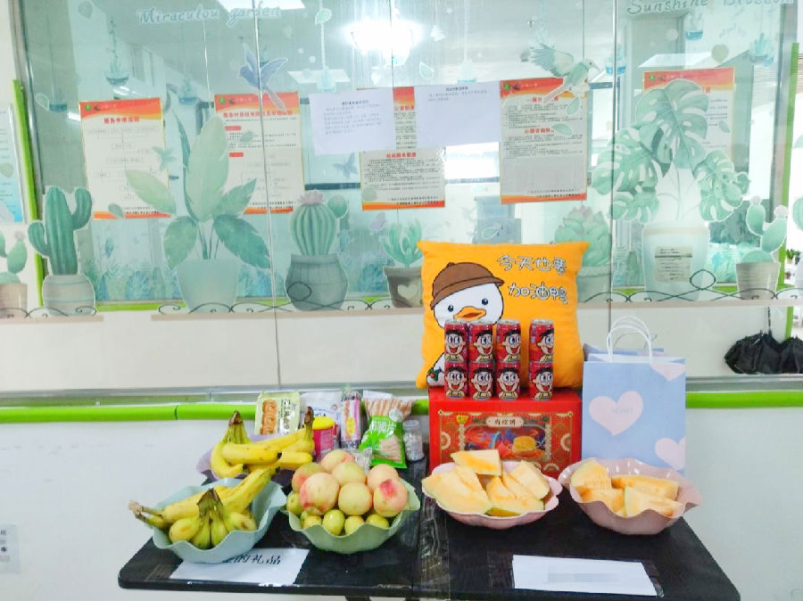 为了表达祝福,舍友们手写了生日祝福明信片送给寿星,祝愿他生活平安顺遂。还帮助社工贴了装饰横幅和气球,布置了一个温馨的生日活动会场,主动参与到活动的每一个环节。