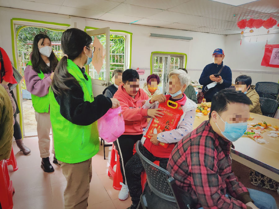活动现场,新春礼品、休闲娱乐、水果茶点等一应俱全,现场氛围十分浓厚。家属们亲切交谈,互相询问近况,“今年你们家准备了什么年货?”“今年花市开了,有没有去逛花市?”“最近身体怎么样”......家常的寒暄,如同老友相见般的问候,现场十分温馨。