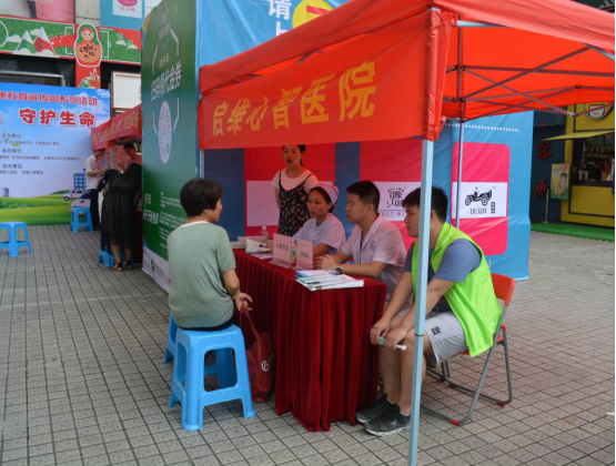 2018年8月3日上午,为普及卫生急救与应急知识,以及加强卫生应急相关法律普法宣传,提高居民卫生应急健康素养,由天河区卫计局、天河区疾控中心牵头,联合天河多家机构共同开展“科学应急,守护生命”健康社区宣传活动。启维心智医院应邀由医院党支部书记林东耳医生带领精神科、心理科医生、精综社工,来到石牌街道为社区居民提供精神及心理健康咨询等健康教育宣传服务,该次活动参加社区居民约100人。