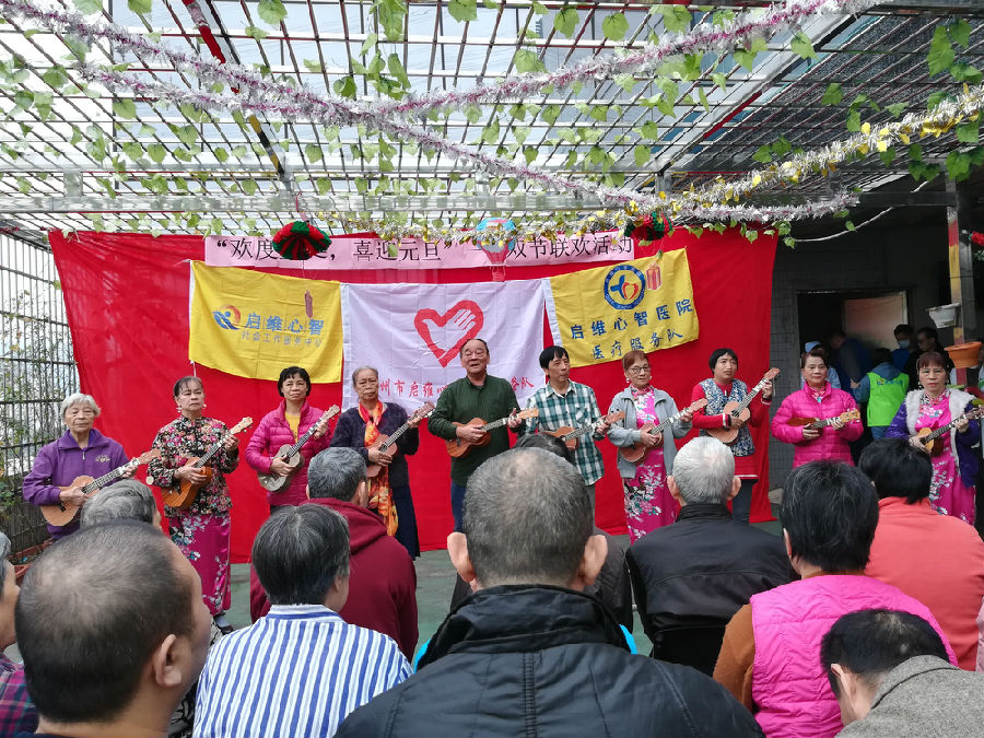 金猪报喜,启维迎春。在2019年来临之际,启维心智医院携手广州市启维心智社会工作服务中心共同策划了一系列的新春活动,下面我们就来看看系列之一——“欢度圣诞,喜迎元旦”双节联欢活动吧。 2018年12月25日上午,社工联合医院的医护人员在五楼室外工娱场所为康复者举办了一场以“欢度圣诞,喜迎元旦”为主题的双节联欢文艺汇演。本次活动旨在进一步丰富康复者的文化生活,提供一个展示他们才华的平台,同时也为了能更好地促进康复者的身心康复,给予康复者们走出家门、平等参为与到社会文化生活的机会。 在微凉不燥、天色泛晴的天气下,郑伟钦主任的致辞为活动拉开帷幕,在活动中,参与者欣赏了各类的歌舞表演,参与了游戏互动,在钢琴演奏的表演中,一首“月亮代表我的心”引起了大家的共鸣,由钢琴演奏变成了现场大合唱。而游戏互动环节更是把活动推向高潮。活动结束前由启维心智医院的陈院长上台致辞,回顾了助力精神病患者的康复历程以及取得成就同时也表达了对康复者衷心的祝福,希望康复者能够早日回归社会,拥有健康的身体和幸福的生活。 精彩花絮: 1.尤克里里弹唱:《呼伦贝尔大草原》《军港之夜》 家属义工团队那尤克里里悠扬的声调配合着浑厚的合唱腔调,歌颂着生活中的美好事物,也借以对康复者表达健康、幸福地生活的美好祝愿。 2.歌曲演唱:《在我的生命里》 演唱者李先生以积极的互动和嘹亮的歌声点燃了现场的气氛,引得大家随着他的节奏一起打拍子。 3.舞蹈:《秘密》 由黄阿姨带领的家属表演团队穿着华丽的服装、优美的曲调以及轻盈的舞步紧紧地吸引住了大家的目光,大家都不由自主地为舞者鼓起了掌。 4.有奖竞猜活动环节 主持人根据游戏道具及规则与大家进行互动,难度随着游戏的进行而逐步加大。但大家对于游戏的热情并没有因此而减少,反而越加积极。大家都踊跃地举手回答,拿到奖品康复者都非常的开心。 5.钢琴演奏:《月亮代表我的心》 个人钢琴演奏者廖女士指尖一触碰琴键,敲击出来的音符便引起大家的共鸣,大家不由自主地跟着曲调唱来出来。场面分外温馨、和谐。 6.舞蹈:《哎呦》 由黄阿姨带领的家属表演团队迈着优雅的舞步,娴熟连贯的动作赢得了大家的赞赏,彰显出一种生命的活力,让大家感受到了一种积极昂扬的生活态度。 7.歌曲演唱:《狮子山下》 演唱者李先生优美的歌声伴着满腔的热情、自信灵活的步伐带领着大家领略音乐的美妙同时感受到自信、乐观的力量。 8.互动环节: 抽奖经过上一轮的互动,大家对于互动环节都充满了期待,抽奖开始后,首先由启维心智医院的陈院长抽取第一位幸运儿并为他送上奖品,接着由幸运儿进行幸运接力抽取下一位幸运儿,以此类推。幸运儿中有男生也有女生,有康复者也有义工,大家都觉得这样的巧合很幸运,现场气氛热闹非凡。 9.旗袍走秀:《水墨兰亭》 这是最后一个压轴节目,因此大家对此也是期待满满,随着千流回转的音乐响起,大家都安静下来静静地欣赏着走秀者那优雅之古风韵味。一颦一笑一回转都散发着别样的气质,为大家所称赞。 告别了2018迎来了2019,在新的一年里启维心智全体同仁感谢各部门、各界人士的支持和指导,感谢病友及家属的信任和理解,我们将一如既往的做好各项工作,让“社区+医院+家庭”康复模式更好的实施,帮助更多的病友回归家庭、回归社会!