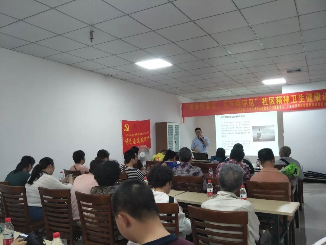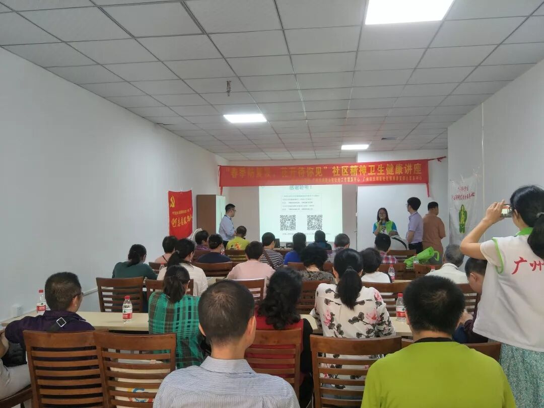 为做好春季精神障碍患者预防和管理工作,4月10日下午,我院与天园街残疾人联合会主办,联合天河区社区精神康复综合服务中心、天河区康园工疗站,天园街家庭综合服务中心、天园街社区卫生服务中心,在星光老人之家举行了以“春季防复发,花开待你见” 为主题的社区精神卫生健康讲座。天河区残联业务科长王智斌,天园街理事长曹婉华,腰岗社区居委主任林彩云参加了活动。