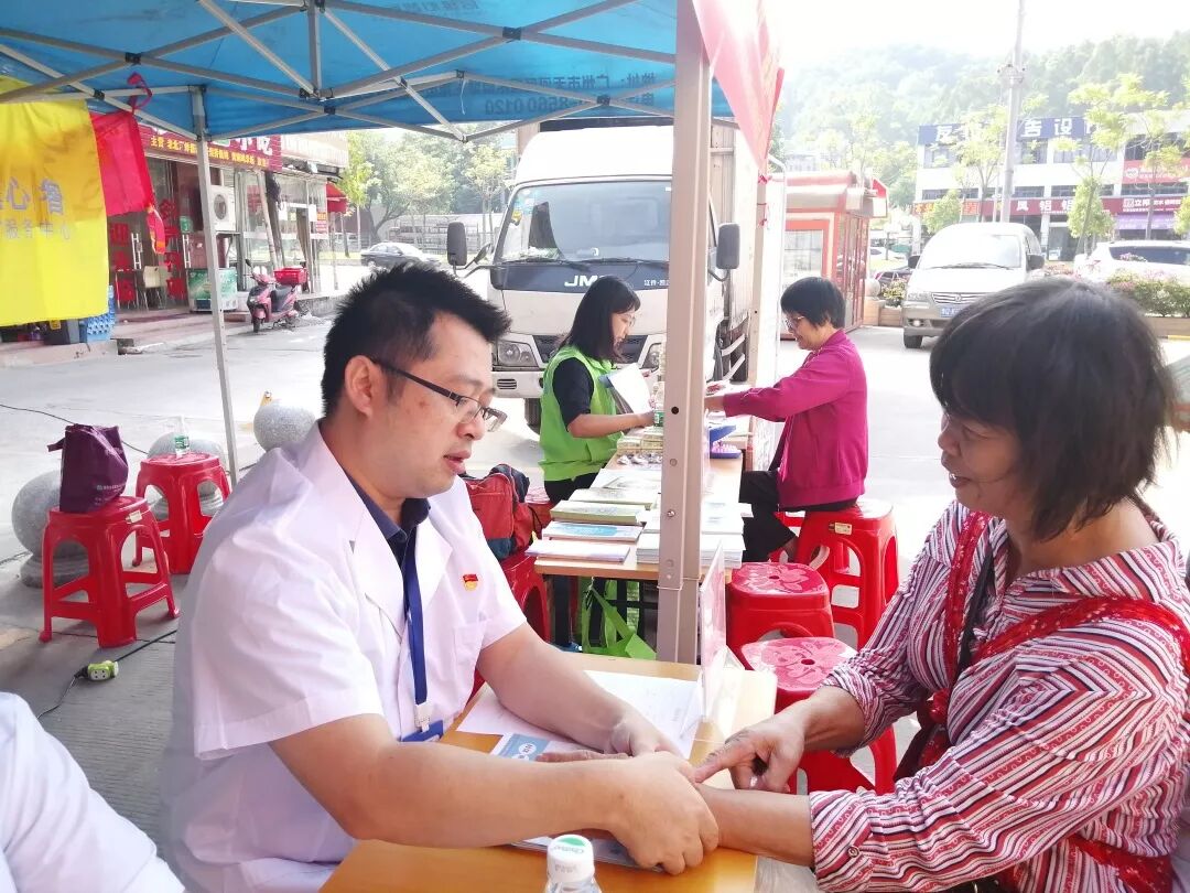 在支部林书记的带领下,我院党员在高塘石社区支起了小帐篷,为社区居民提供免费测量血压、