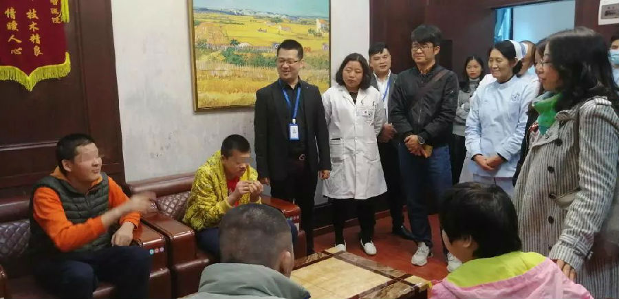 我院书记林东耳林带领福利院领导们参观了我院的住院环境,并探望了从福利院转到我院的孩子们。