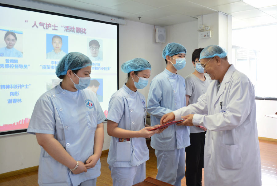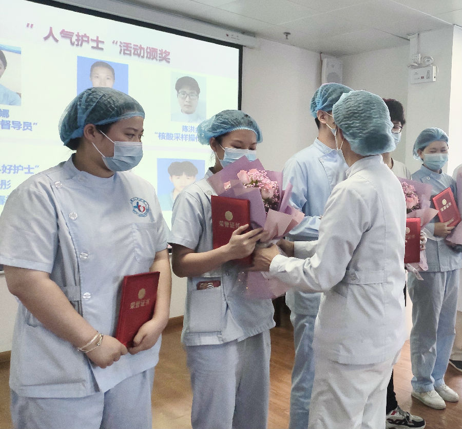活动授予了曾媚娜、李利君、陈洪金、谢春林、陶彤五人为今年护士节的“人气护士”,由赵振环主任为他们颁发了荣誉证书和奖金,表彰他们优秀的工作成果;护理部张磊主任为他们送上鲜花,希望他们能够继续发扬南丁格尔精神,将优秀的品质传递给下去。