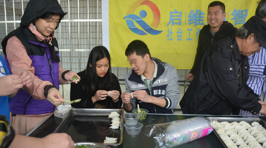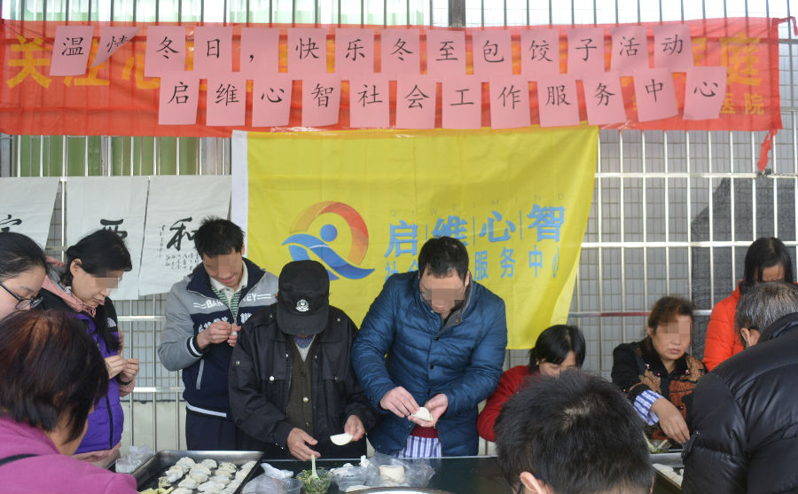 为了进一步弘扬民族文化,彰显传统文化魅力,营造院内节日氛围,同时促进康复者之间的亲密联系和交流互动,广州市启维心智社会工作服务中心于2017年12月22日9:30在启维心智医院开展“温情冬日,快乐冬至”包饺子活动。 活动开展前,护理部张主任先向康复者和前来参加活动的家属表示感谢和致以节日的问候,紧接着,在社工与医护人员的带动下,康复者开始分工合作,一张张面皮开始在手中转动起来,填肉馅,将面皮对折,然后包边,很快变成了一个个不同形状的漂亮的饺子,每个康复者都将自己包好的饺子展示出来,分享给参加活动的康复者。饺子包好后,医护人员和康复者们将饺子交给厨房阿姨蒸煮,然后拿到病房给康复者一起分享,一锅锅新鲜滚热的饺子呈现在大家面前,饺子吃在嘴里,暖在心头,也代表了社工和医护人员对康复者最真挚的祝福。 康复者徐大哥是一名书法爱好者,他代表康复者向医院赠送书法作品《家》,启维心智医院就是康复者的家,希望所有在这里康复者也像家人一样,大家互助互爱,像家人一样其乐融融! 通过社工组织康复者包饺子活动,不仅仅让康复者感受到了浓厚的节日气氛,更让他们锻炼了动手的能力,也增强了他们交流互动的能力。今后也将在传统节日继续开展此类活动,为精神康复者更好地恢复自我功能创造更多的机会。 启维心智社会工作服务中心在医院开展康复者活动是医疗服务新举措中的一项,也是启维心智医院在精神康复领域探索实行的“医院-社区-康复”模式,旨在逐步提升康复者的工作、社交能力,并鼓励他们自力更生,重新回归家庭融入社会。(启维心智社会工作服务中心)