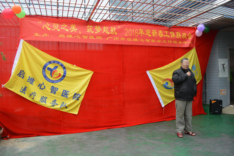 “心灵之美,筑梦启航”2018年迎新春工休联欢会--启维心智医院、广州市启维心智社会工作服务中心 2018年1月27日,广州市启维心智社会工作服务中心联合启维心智医院在活动场为精神科病区举行了以“心灵之美,筑梦启航”为主题的新春工休联欢会。此次联欢会以促进精神疾病患者康复,增强医患及护患之间的联系,加强各个角色之间的协作为目的而进行,精神科病区全体医护人员、护工、所有患者及部分家属参加此次活动。 此次联欢会由精神疾病患者徐大哥与护理部杨护士主持,由启维心智医院的医护人员和部分精神疾病患者共同进行节目表演。活动现场每一个角落都透露着浓浓的气氛。工作人员们把现场挂上了各色的气球和彩旗,活动开始后,节目丰富多彩,合唱、舞蹈、朗诵、游戏……等等应有尽有,每一个节目都是医患人员共同合作,自编自导自演而成,现场一片欢声笑语。 首先以启维心智医院最大阵容的医护代表合唱《相亲相爱一家人》开场,热情洋溢的精神病患者不负众望,活跃了气氛,给联欢会开了一个好头,让大家对后面的节目越发期待。随后由罗晓冰护士长代表科室发表讲话,她说可爱的病人、辛勤付出的护工和兢兢业业的医护人员的小故事,只言片语间,满是对患者的关怀,满是对科室的热爱,最后大家在护士长的带领下默默祈祷,许下自己来年的心愿。 “你乘着风儿来到我身旁”“我骑着马儿带你回家”,舞蹈演出者张大姐(患者)在台下优雅的走上舞台,为大家表演了她是如何骑着马儿带你回家乡的,完美的演绎了《梦回家乡》,获得了医护人员及其他病友的掌声。 随着掌声的落下,主持人请出了张大哥(患者)为大家演唱《万水千山总是情》,诠释了我们的医护人员与患者之间存在着不可分割的“情”。 舞也跳了,歌也唱了,下面是游戏时间——“踩气球”,这么一个热闹的小游戏,让医护人员和患者体会到了什么叫疯狂!什么叫争先恐后!把整个节目推向了高潮。 一场游戏混战之后,接下来由四位患者为大家带来了诗歌朗诵,洪亮的声音遍布活动场的每一个角落,他们的朗诵充满温暖,散发出的魅力让在场的每一位如痴如醉。 “感恩”这个词,大家都不陌生。感恩父母,赐予我们生命,用爱的阳光温暖我们;感恩老师,教导我们道理,用知识的雨露滋润我们;感恩启维心智医院的医护人员,不辞劳苦、毫无怨言、24小时值班照看我们,协助我们走上康复之路。下面由主持人徐大哥演唱和张大姐伴舞,共同演绎《感恩的心》,以表感谢兢兢业业的医护人员。我们的医护人员也表示在未来新的一年里将好的会继续做得更好,不足的会吸取经验逐渐完善。 我来自偶然,像一颗尘土,我怀揣着理想,奔赴远方,只因我这一生不羁放荡爱自由。生活确实不容易,但为了理想,前方的海阔天空更值得我们去探索。下面是黄家驹的忠实粉丝黄大哥(患者)演唱《海阔天空》,希望活动现场的所有人都能拥有自己的一片海阔天空。 活动现场欢乐不断,接着由黄大哥演唱筷子兄弟的《父亲》,徐大哥演唱《映山红》、刘和刚的《父亲》,张大姐演唱《粉红色的回忆》,还有蓝大哥的《万里长城永不倒》。不论有多好的唱功,有多圆的唱腔,都需要一颗仁爱、仁慈的心,为社会、家庭发光发热。用有利于家庭,有利于社会的人报答社会的关心、报答人间的温情。让我们启维医护人员及其工作人员、康复者们一起共同配合协作,把自己的身体健康起来,把自己原有的风采找回来,再呼唤人生的精彩,再为家庭、社会的和谐稳定做出新努力,再能在启维心智医院的治疗后,对医院说声再见,再把我们以前美好的日子找回来。为把心中的美好愿望表达出来,全体人员共同演唱《好日子》。 最后,由启维心智医院的领导致词:康复路上,你我并肩,携手战斗,温暖相伴。愿大家能早日回归社会。