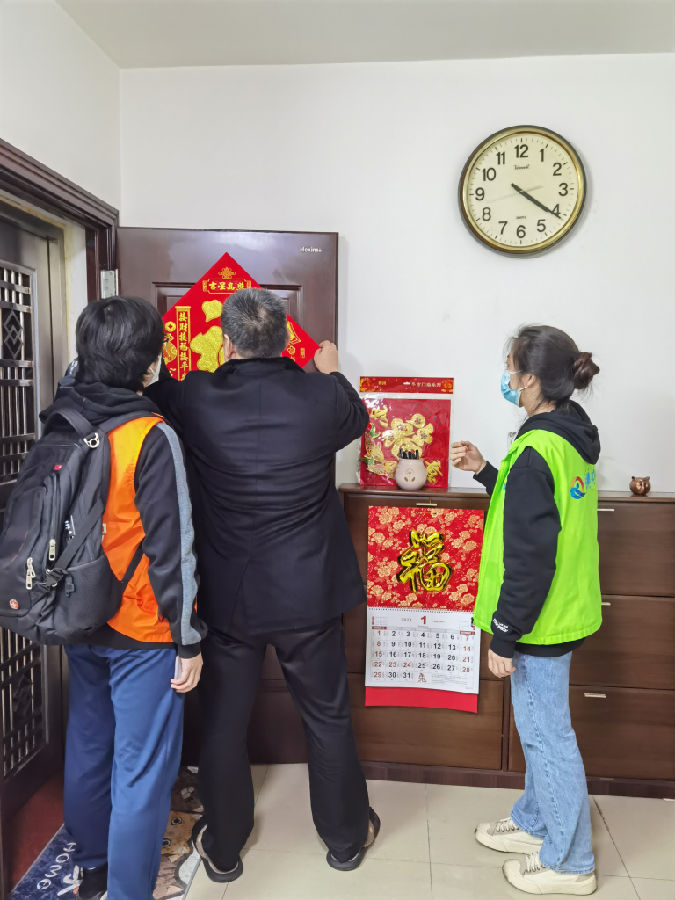 探访过程中,社工与社区爱心人士为他们送来了新春慰问品、春节年画及新春祝福,走到精康患者家中与他们畅聊家常,嘘寒问暖,近距离了解精康家庭的生活状况和需求。