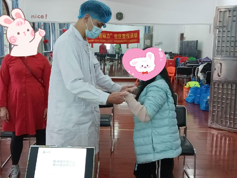 在精神健康宣传活动中,社区精防医生向精神康复者及其家属科普精神康复知识,提升社区居民、康复者及其家属对精神卫生的了解,提社区居民对他们的接纳程度,促进社区和谐共融。
