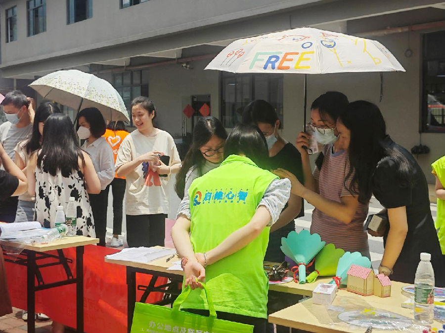 活动前,社工征集康复者手工作品进行爱心义卖,希望汇聚群众支持,尊重残疾同胞的劳动成果,提升他们的社会价值认同感,广泛动员社会各界关心、支持、帮助残疾人,努力在全社会营造扶残助残的文明新风尚。