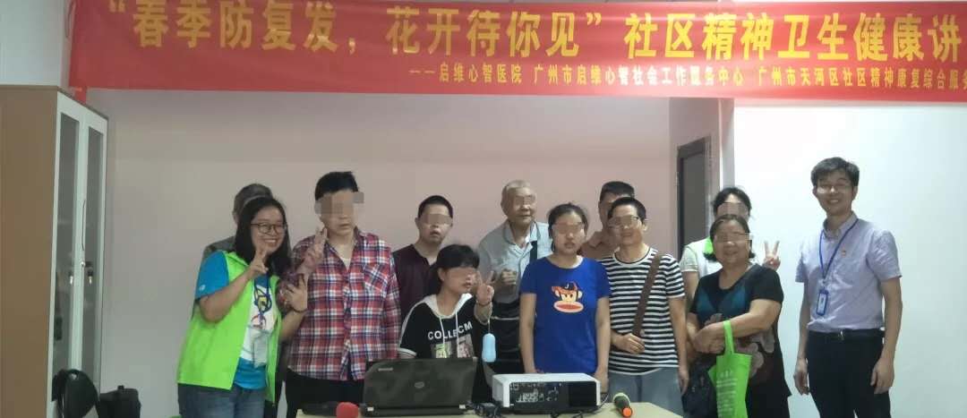 为做好春季精神障碍患者预防和管理工作,4月10日下午,我院与天园街残疾人联合会主办,联合天河区社区精神康复综合服务中心、天河区康园工疗站,天园街家庭综合服务中心、天园街社区卫生服务中心,在星光老人之家举行了以“春季防复发,花开待你见” 为主题的社区精神卫生健康讲座。天河区残联业务科长王智斌,天园街理事长曹婉华,腰岗社区居委主任林彩云参加了活动。