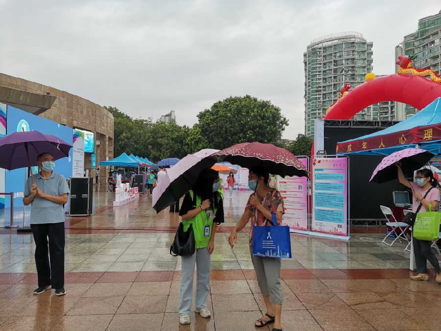 10月10日上午,由天河区建设健康促进区工作领导小组、区委政法委、区卫生健康局、广州市精神卫生中心主办的“青春之心灵青春之少年”世界精神卫生日宣传活动在天河公园北门广场拉开了序幕。启维心智医院作为协办单位之一,协助开展了形式多样的宣传活动,通过多种途径的宣传教育,营造浓厚的心理卫生氛围,帮助儿童青少年掌握心理健康相关知识,提升心理调适能力,共同创造更有利于青少年心理健康的外部环境,推动健康促进区创建工作。 阴沉的天气,细雨绵绵不绝,有不少市民伴着风雨前来咨询了解他们关心的心理健康问题。在活动现场随处可见的是启维心智社工们穿着绿色小马甲撑着伞在现场来回穿梭的身影,给市民做体温登记、查验市民健康码与通行码、为市民做现场导引。 现场设置了儿童青少年心理咨询专区、康复专区、老年心理健康专区、中医治未病+中医护理特色技术体验区、传统心理疾病专区、精神心理卫生知识廊专区、精神康复综合服务咨询区。活动的主要内容有专家答疑、心理测量、心理问题筛查、用药指导、康复技术指导、八段锦展示、有奖知识问答、康复者作品展览与义卖、血压血糖测量。 “你好,请出示您的健康码。”这天上午,精神障碍康复者朱某对前来参观的市民不断重复这句话。朱某是负责给市民做体温登记、查验市民健康码与通行码的工作人员之一,也是天河区社区精神康复综合服务中心(简称“天河精综”)的服务对象之一。她此前多数时间在家,较少参与社区活动,对于人生感到迷茫,整日无所事事也没有目标。为协助朱某更好地康复,天河精综社工对其介入服务后,朱某逐渐找回自己的生活兴趣及目标,并积极参加社工组织的服务,在活动中能积极主动与其他人交流互动。以往开展活动时,朱某多次作为志愿者参与,为参与人员提供现场测温服务。在得知此次活动后,朱某便主动向社工报名当志愿者。 主动报名当志愿者的还有中途宿舍舍友小陈和小纪。舍友小陈,在入住中途宿舍后,一直努力适应中途宿舍环境及服务,他胆子非常小,遇到陌生人便会满脸通红、心跳加速,甚至不敢与陌生人打招呼。在社工持续为该舍友开展社交支援训练及个案辅导之后,在社工的鼓励和支持之下,舍友有了较为明显的成长,目前能够和他人进行基本交流,在陌生人面前也能控制紧张和怯弱的心理,现在在舍友中也能偶尔充当活跃气氛的角色。在活动中,舍友小陈负责管理现场物资,分装礼品与派发工作。现场来往人员很多,他们没有感到紧张和害怕,有条不紊忙着手中的工作。 宣传活动中,启维心智医院工作人员通过现场发放宣传资料、科普知识展示、有奖知识问答、义诊咨询等方式,广泛宣传精神卫生知识,为群众提供心理咨询服务。有奖知识问答活动吸引了众多市民参与,社工在维持秩序的同时不断向市民宣传普及精神卫生健康知识,有了社工的讲解,市民们能轻易地说出正确答案,拿着奖品乐呵呵地离开。医务人员耐心为前来咨询的群众进行诊疗和宣传,就精神心理疾病如抑郁症、焦虑症等疾病的预防和保健知识进行详细讲解,全面提高了群众精神健康素养,为群众普及了在精神卫生方面相关方面的知识,并发放相关知识健康手册,医务人员的耐心解说和热情服务深受现场群众一致好评。 此次精神卫生日宣传活动,意在普及精神卫生知识,唤起全社会关注心理健康的意识,今日现场的盛况,是人们逐渐重视精神健康的有力说明,也是社会公民素养进一步提高、知识水平进一步提升的证明。活动已经结束,但精神卫生的宣传仍在继续,对于精神健康问题,需要我们发扬钉钉子的精神,一锤一锤敲下去,将力度干在实处,做到细处,落在深处。惟其如此,才能将钉子钉牢钉实,才能将精神健康问题彻底解决,才能让发展的脚步更加平稳坚定。