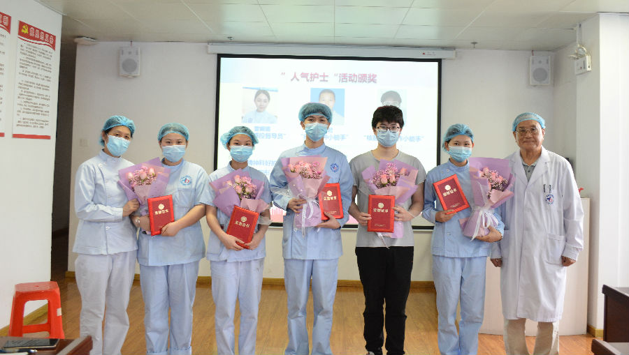活动授予了曾媚娜、李利君、陈洪金、谢春林、陶彤五人为今年护士节的“人气护士”,由赵振环主任为他们颁发了荣誉证书和奖金,表彰他们优秀的工作成果;护理部张磊主任为他们送上鲜花,希望他们能够继续发扬南丁格尔精神,将优秀的品质传递给下去。