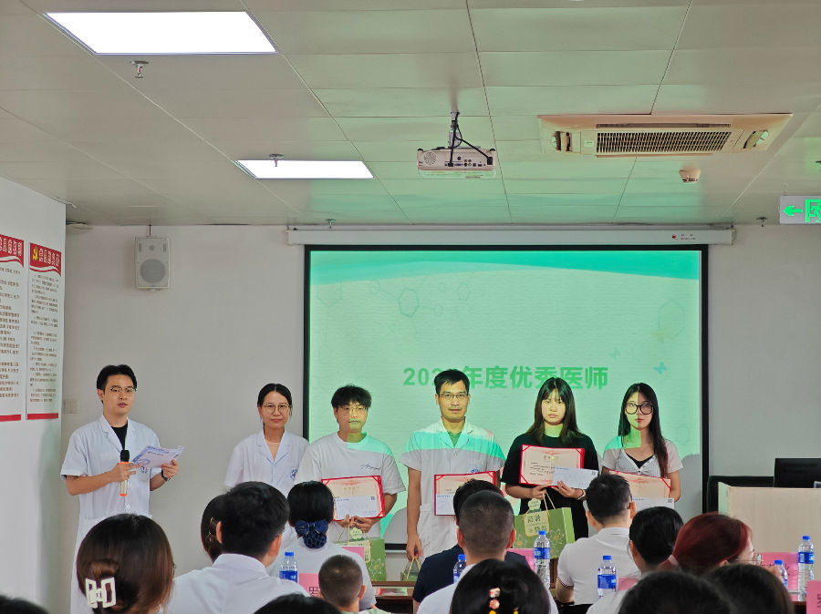 在第七个中国医师节来临之际,为弘扬医者崇高的职业精神,营造尊医重卫的良好氛围,8月19日,启维心智党支部开展了“崇尚人文精神,彰显医者仁心”2024年医师节庆祝系列活动,向全体医务人员致以节日的问候。 薪火赓续,立先锋促发展 19日上午,我院举行2024年医师节表彰仪式,表彰了在过去一年中表现优异的优秀医师,感谢他们以专业的工作态度和奋发进取的精神,展现了医者风采,为患者带来优质的服务。也激励全体医务人员不断提升自我,发挥先锋模范作用,展示医者风范。 颁奖现场 (韩朋飞医生荣获“天河好医生”称号) 此外,我院韩朋飞医师在由天河区卫生健康局、天河区医学会举办的2024年首届天河区“天河好医生”活动中,荣获“天河好医生”称号,这一荣誉不仅是一种认可,更诠释了全心全意为患者服务的精神,也将激励更多医生提升专业造诣,“医”心为民,造福更多患者。 党支部书记林东耳向全体医师送上了节日问候,并寄语全体医者保持追求卓越、砥砺前行的态度,通过持续的学习与实践,提高自身的医疗服务水平,从医疗事业中获取幸福感、满足感。 以练促防,提升应急能力 为提升医务人员对突发事件的应急处置能力,19日上午,医务科开展了门诊突发事件应急演练,协调护理部、保卫科等科室,对门诊精神障碍患者突发疾病的应对处理作了演练与讲解,全体医务人员观摩了演练。 (演练现场) 演练过程中,各部门人员分工明确,在保障环境安全和其他患者安全的情况下,注重患者和家属的情绪安抚,并向相关科室、部门汇报情况,使该事件妥善处理。 此次演练在增强医务人员对突发事件应对处理能力的同时,也倡导关注医务人员人身安全和就医环境安全,为患者和医务人员提供更加坚实与舒适的诊疗环境。 妙趣横生,游园会欢乐多 19日下午,为丰富医务人员休闲娱乐生活,启维心智医院工会委员会举办了一场丰富多彩的游园会活动,涵盖多个游戏项目,集挑战性与趣味性于一体,为医师们营造一个欢乐有趣的节日,帮助他们释放身心,在娱乐中拉近了彼此的距离,增强了团队的凝聚力和向心力。 医者二字,承载生命的重量,传递人间的温暖。本次医师节营造尊医重卫的节日氛围,倡导尊重和爱护医务人员,激励医务人员加强医疗服务能力,为守护群众健康贡献力量。