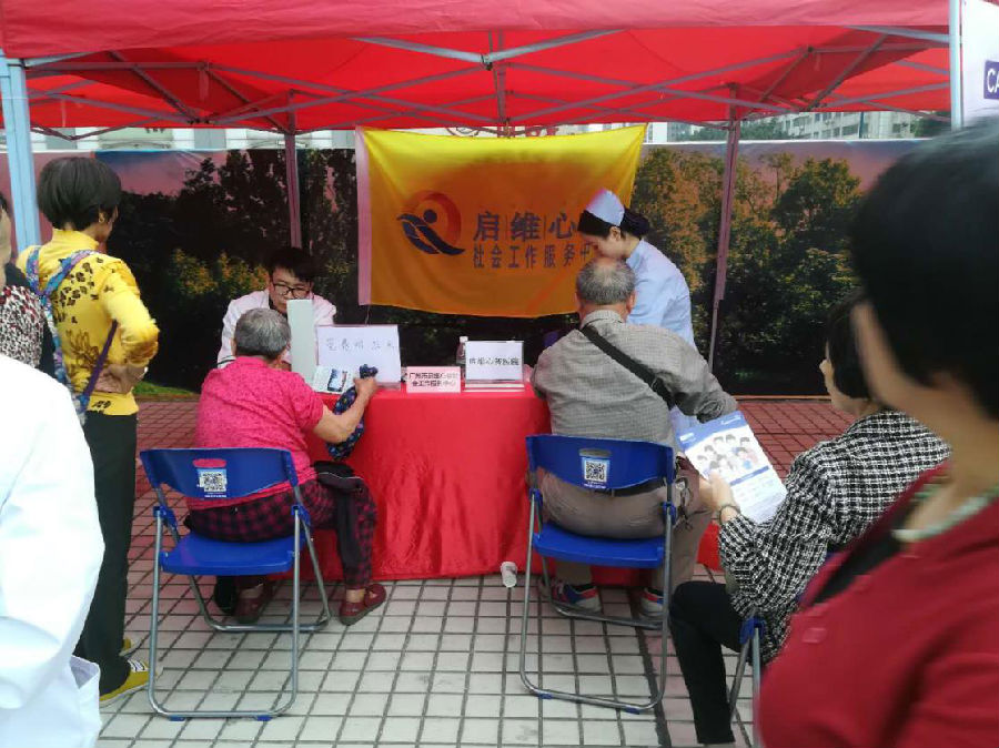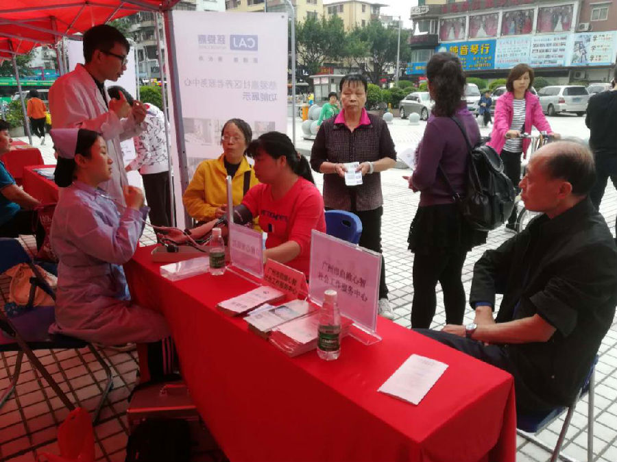 2017年11月29日,我院陈铧樱院长组织医护人员与社工团队参加由广州市老年人服务中心联合海珠区滨江街道办事处举办的“欢庆十九大,关爱老年人”活动。 (图片为:陈铧樱院长与李向东主任的合照) 在活动现场,我院医护人员为长者们献爱心:送健康义诊,包括量血压、测血糖、健康咨询等。医护人员了解长者的生活、身体等详细情况,耐心细致地解答长者所关心的健康问题,同时为长者们讲解了合理饮食、体育锻炼、科学养生等方面的健康知识,旨在指导老年人养成良好的生活习惯。 此外,我院的社工队伍还向他们派发中心的宣传手册,向他们介绍中心可提供的服务,包括为老人、残疾人等有需要人群提供专业社工服务、日间照料、医养融合的居家养老、上门护理、康复评估、训练及康乐文化训练等;为孤独症儿童提供各种训练及康复服务;开展社会工作课题研究、宣传和学术交流活动等;社工组织还可以承接政府有关部门委托的各类社会工作服务项目和其他任务。 此次活动为长者们带来了方便,也让他们享受到社会的关爱。市老年人服务中心李主任、海珠区滨江街道廖书记、谭副主任等领导对此次活动表示赞许,肯定我院以及社会工作服务中心所提供的服务,并祝愿我院与社会工作服务中心未来发展得越来越好,以“医疗+社工+康复”的创新服务模式,为广大群众提供更好更优质的服务。