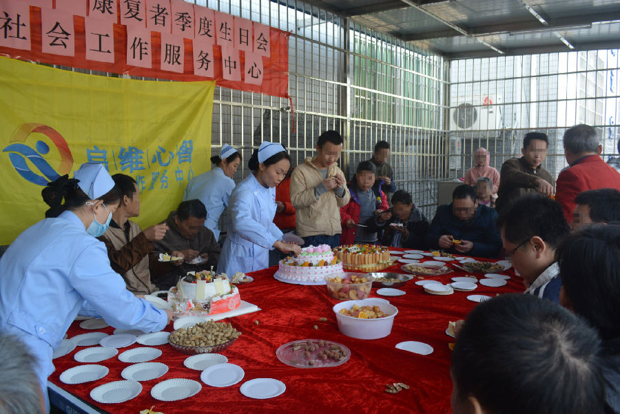 2017年12月9日早上,启维心智社会工作服务中心于医院五楼户外工娱场举行了温馨欢乐的季度生日会。本次生日会的主要活动对象是10至12月生日的院内康复者。现场将近60名的精神康复者及其家属朋友参加活动,另外7名医护人员为本次活动提供了大力的支持。 在活动开始之际,社工与医护人员一起用心布置活动现场,经过大家的精心布置后整个活动现场充满了温馨喜庆的气氛。生日会时间到了,各位精神康复者由医护人员带到活动现场,工作人员表示热烈欢迎。接着由郑主任宣读本次生日会主题,宣布本次生日会开始,并献上祝福语点燃了现场气氛,带动大家的热情。 (郑主任宣读生日会主题) 主持人罗护长对本季度生日的寿星进行介绍,并邀请医护人员为他们戴上生日帽,请本季寿星发言。首先,请出的是今天的寿星冼大哥发言,冼大哥说:“各位兄弟姐妹们,今天是我50岁的生日,我非常感谢院方为我举办这么有爱的一个生日会,感谢院方的领导、医生和护士尽心尽力,让我能够更好的康复,也造福于其他的患者,我希望其他的兄弟姐妹们能够像我一样配合医院的治疗,早日康复!”在听到兄弟姐们一词时,我们的工作人员深深的感受到了康复者们之间已不分彼此,互相帮助,互相关爱,完全融入到启维心智的大家庭了。 (寿星致辞) 接着由徐大哥表演唱歌,他说:“虽然冼大哥年龄比我小,但我却愿意叫他一声哥,这就是他散发出来的人格魅力,所以我特地为他设了一个开场白,我代表个人及工友们的祝福,恭祝冼大哥生日快乐,冼大哥最喜欢的一句话是‘人德仁义人性人慈’,为此,我昨天在医院领导及凤凰街道党工委单指导员带领下,为冼大哥题了一幅字画并赠送给他。最后为他送上一首《万水千山总是情》。”康复者们一起高歌,现场氛围相当浓厚! (为寿星题字画) (康复者们愉悦的享用蛋糕) 下面再请出了黄大哥为大家演唱甲壳虫乐队的《Let it be》,通过演唱的方式唱出了对寿星以及在场人员的祝福,精彩的表演给大家带来了一场心灵的享受,现场响起了一阵又一阵的掌声。 罗护长把准备好的巨型生日蛋糕送到大家面前,点上蜡烛,唱起了生日歌,再次表达对寿星的祝愿,随后大家便一起分享蛋糕与美食。护长引导大家围坐一起,营造轻松愉悦的氛围,给大家搭建分享交流的平台。 (冼大哥与兄弟姐妹们的拥抱) 精神康复者集体生日会是中心每年的惯例,精神疾病是一种长期、易复发、损坏性强的疾病,而精神康复者不仅受到疾病的折磨,更由于社会的不理解和歧视被边缘化,严重缺乏环境和社会的支持,因此中心、医院每季度都开展这样的活动(生日会、端午节包粽子、中秋节月饼分享等),既是为精神康复者及家属提供一个彼此相聚的平台,也是促进精神康复者能够通过人际交流和互动,能够更好的融入社会。