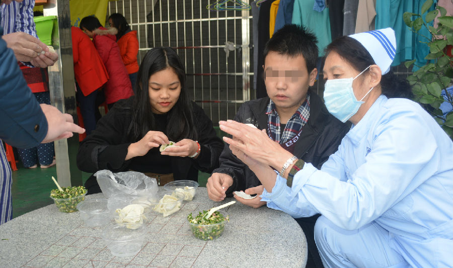 为了进一步弘扬民族文化,彰显传统文化魅力,营造院内节日氛围,同时促进康复者之间的亲密联系和交流互动,广州市启维心智社会工作服务中心于2017年12月22日9:30在启维心智医院开展“温情冬日,快乐冬至”包饺子活动。 活动开展前,护理部张主任先向康复者和前来参加活动的家属表示感谢和致以节日的问候,紧接着,在社工与医护人员的带动下,康复者开始分工合作,一张张面皮开始在手中转动起来,填肉馅,将面皮对折,然后包边,很快变成了一个个不同形状的漂亮的饺子,每个康复者都将自己包好的饺子展示出来,分享给参加活动的康复者。饺子包好后,医护人员和康复者们将饺子交给厨房阿姨蒸煮,然后拿到病房给康复者一起分享,一锅锅新鲜滚热的饺子呈现在大家面前,饺子吃在嘴里,暖在心头,也代表了社工和医护人员对康复者最真挚的祝福。 康复者徐大哥是一名书法爱好者,他代表康复者向医院赠送书法作品《家》,启维心智医院就是康复者的家,希望所有在这里康复者也像家人一样,大家互助互爱,像家人一样其乐融融! 通过社工组织康复者包饺子活动,不仅仅让康复者感受到了浓厚的节日气氛,更让他们锻炼了动手的能力,也增强了他们交流互动的能力。今后也将在传统节日继续开展此类活动,为精神康复者更好地恢复自我功能创造更多的机会。 启维心智社会工作服务中心在医院开展康复者活动是医疗服务新举措中的一项,也是启维心智医院在精神康复领域探索实行的“医院-社区-康复”模式,旨在逐步提升康复者的工作、社交能力,并鼓励他们自力更生,重新回归家庭融入社会。(启维心智社会工作服务中心)