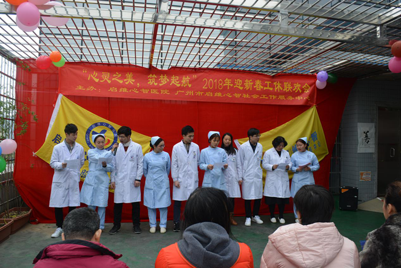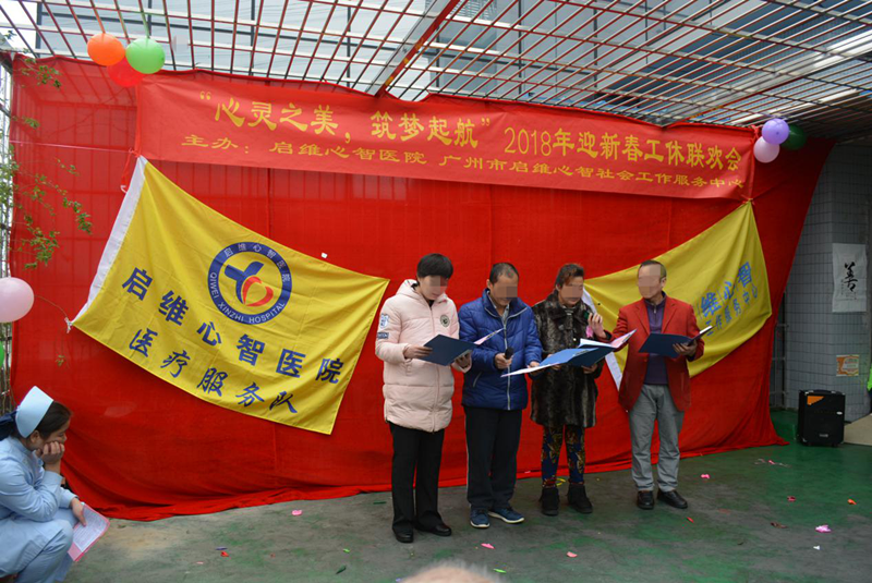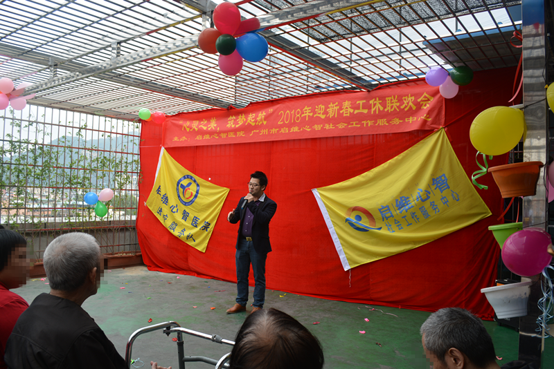 “心灵之美,筑梦启航”2018年迎新春工休联欢会--启维心智医院、广州市启维心智社会工作服务中心 2018年1月27日,广州市启维心智社会工作服务中心联合启维心智医院在活动场为精神科病区举行了以“心灵之美,筑梦启航”为主题的新春工休联欢会。此次联欢会以促进精神疾病患者康复,增强医患及护患之间的联系,加强各个角色之间的协作为目的而进行,精神科病区全体医护人员、护工、所有患者及部分家属参加此次活动。 此次联欢会由精神疾病患者徐大哥与护理部杨护士主持,由启维心智医院的医护人员和部分精神疾病患者共同进行节目表演。活动现场每一个角落都透露着浓浓的气氛。工作人员们把现场挂上了各色的气球和彩旗,活动开始后,节目丰富多彩,合唱、舞蹈、朗诵、游戏……等等应有尽有,每一个节目都是医患人员共同合作,自编自导自演而成,现场一片欢声笑语。 首先以启维心智医院最大阵容的医护代表合唱《相亲相爱一家人》开场,热情洋溢的精神病患者不负众望,活跃了气氛,给联欢会开了一个好头,让大家对后面的节目越发期待。随后由罗晓冰护士长代表科室发表讲话,她说可爱的病人、辛勤付出的护工和兢兢业业的医护人员的小故事,只言片语间,满是对患者的关怀,满是对科室的热爱,最后大家在护士长的带领下默默祈祷,许下自己来年的心愿。 “你乘着风儿来到我身旁”“我骑着马儿带你回家”,舞蹈演出者张大姐(患者)在台下优雅的走上舞台,为大家表演了她是如何骑着马儿带你回家乡的,完美的演绎了《梦回家乡》,获得了医护人员及其他病友的掌声。 随着掌声的落下,主持人请出了张大哥(患者)为大家演唱《万水千山总是情》,诠释了我们的医护人员与患者之间存在着不可分割的“情”。 舞也跳了,歌也唱了,下面是游戏时间——“踩气球”,这么一个热闹的小游戏,让医护人员和患者体会到了什么叫疯狂!什么叫争先恐后!把整个节目推向了高潮。 一场游戏混战之后,接下来由四位患者为大家带来了诗歌朗诵,洪亮的声音遍布活动场的每一个角落,他们的朗诵充满温暖,散发出的魅力让在场的每一位如痴如醉。 “感恩”这个词,大家都不陌生。感恩父母,赐予我们生命,用爱的阳光温暖我们;感恩老师,教导我们道理,用知识的雨露滋润我们;感恩启维心智医院的医护人员,不辞劳苦、毫无怨言、24小时值班照看我们,协助我们走上康复之路。下面由主持人徐大哥演唱和张大姐伴舞,共同演绎《感恩的心》,以表感谢兢兢业业的医护人员。我们的医护人员也表示在未来新的一年里将好的会继续做得更好,不足的会吸取经验逐渐完善。 我来自偶然,像一颗尘土,我怀揣着理想,奔赴远方,只因我这一生不羁放荡爱自由。生活确实不容易,但为了理想,前方的海阔天空更值得我们去探索。下面是黄家驹的忠实粉丝黄大哥(患者)演唱《海阔天空》,希望活动现场的所有人都能拥有自己的一片海阔天空。 活动现场欢乐不断,接着由黄大哥演唱筷子兄弟的《父亲》,徐大哥演唱《映山红》、刘和刚的《父亲》,张大姐演唱《粉红色的回忆》,还有蓝大哥的《万里长城永不倒》。不论有多好的唱功,有多圆的唱腔,都需要一颗仁爱、仁慈的心,为社会、家庭发光发热。用有利于家庭,有利于社会的人报答社会的关心、报答人间的温情。让我们启维医护人员及其工作人员、康复者们一起共同配合协作,把自己的身体健康起来,把自己原有的风采找回来,再呼唤人生的精彩,再为家庭、社会的和谐稳定做出新努力,再能在启维心智医院的治疗后,对医院说声再见,再把我们以前美好的日子找回来。为把心中的美好愿望表达出来,全体人员共同演唱《好日子》。 最后,由启维心智医院的领导致词:康复路上,你我并肩,携手战斗,温暖相伴。愿大家能早日回归社会。